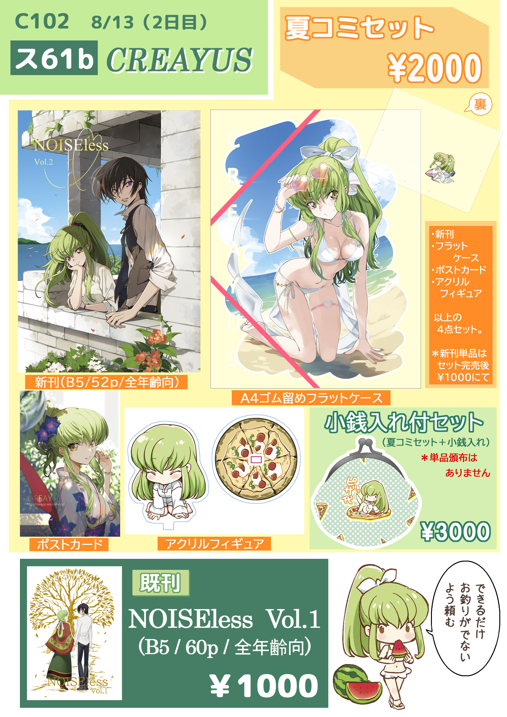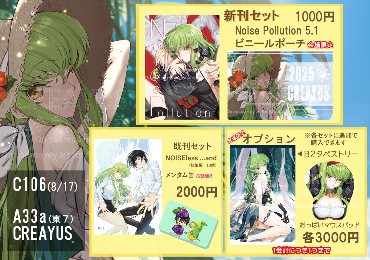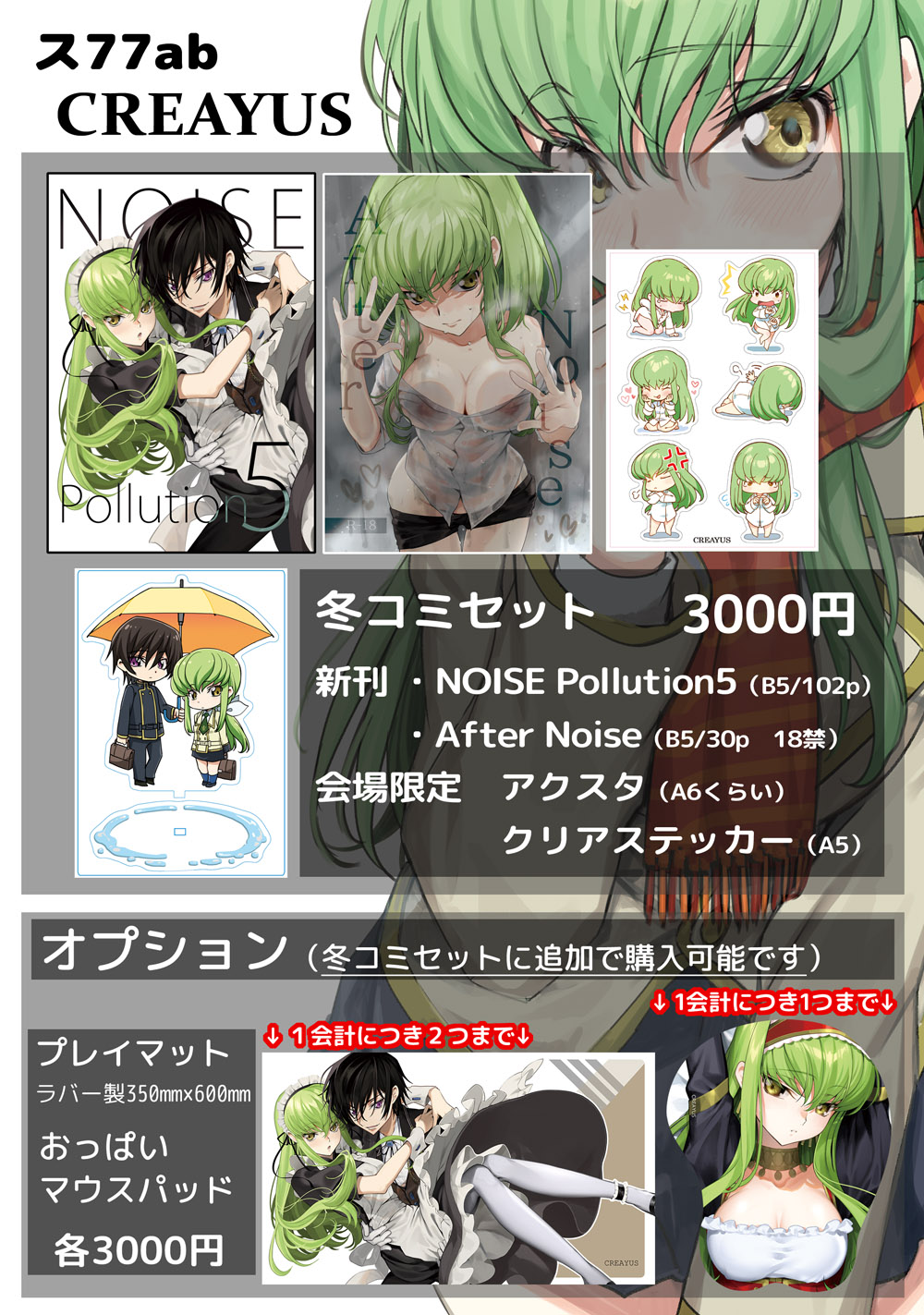 そのため、前回C98の時の約3分の1の量を搬入しています。グッズと新刊は同数で搬入していますが、予備などの関係で新刊のみ余りましたら、新刊単品を頒布します。
